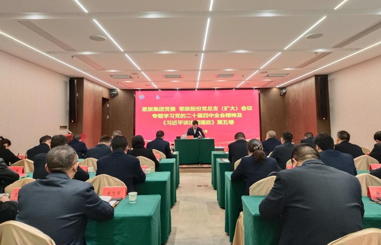 11月14日,恩旅集团党委与鄂旅股份党总支联合组织召开专题会议,深入学习贯彻党的二十届四中全会精神,并外请教授就第五卷作专题宣讲。