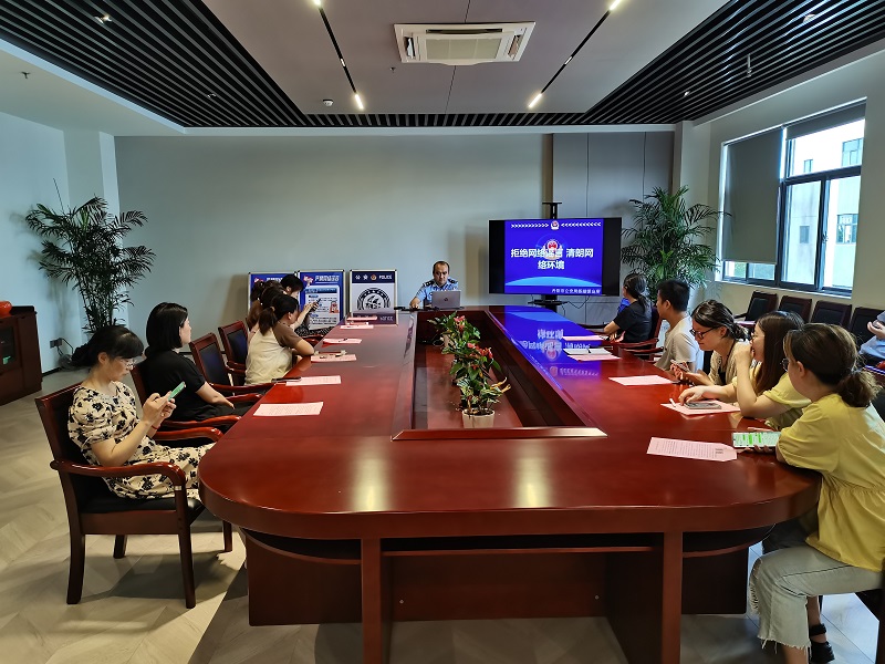 活动中,练湖派出所民警向大家发放宣传资料,为大家讲解了“什么是网络谣言?”“网络谣言的危害有哪些?”“传播网络谣言会受到怎么样的惩罚?”等公司成员关心的问题。