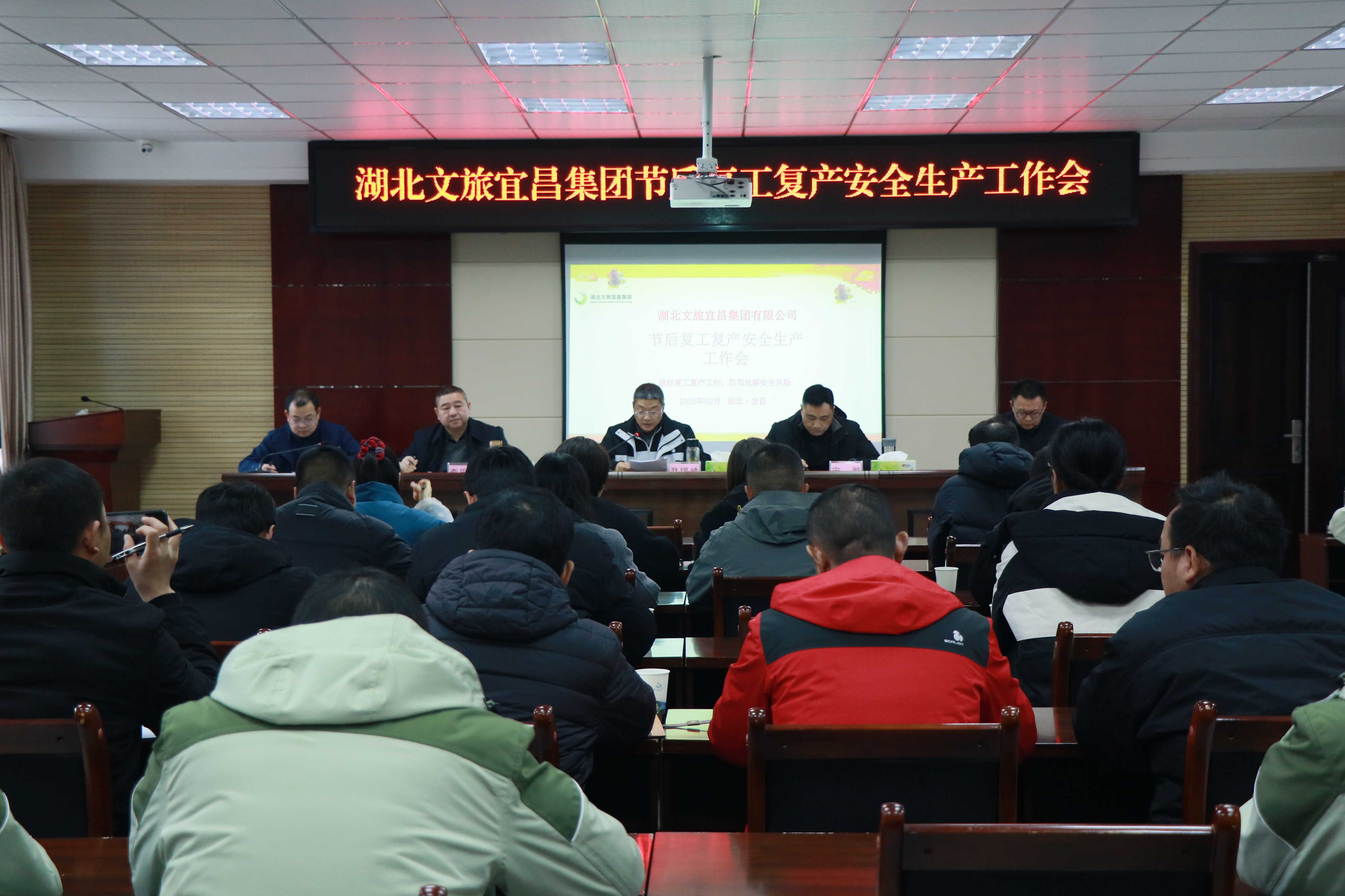 2月24日,宜昌集团在清江画廊景区召开节后复工复产安全生产工作会,集团党委委员、执行总经理尹锡峰出席会议并讲话,集团副总经理宋翀作复工复产安全生产工作动员部署。集团安全生产管理办公室,各子公司安全生产第一责任人、分管安全责任人及安全生产管理相关人员共计40余人参加会议。